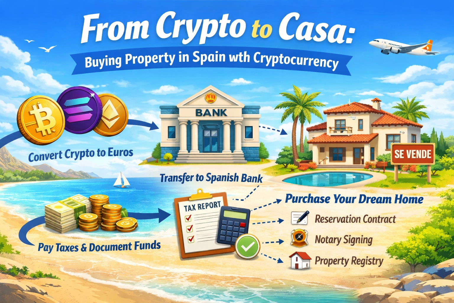 Cryptocurrency has created unprecedented wealth for investors worldwide, and many are now asking: โCan I turn my digital profits into a Spanish home?โ The answer is yesโbut the process is more complex than simply sending Bitcoin or Solana to a bank. Spain has strict taxation rules, anti-money laundering regulations, and documentation requirements, which you must navigate carefully to legally use...