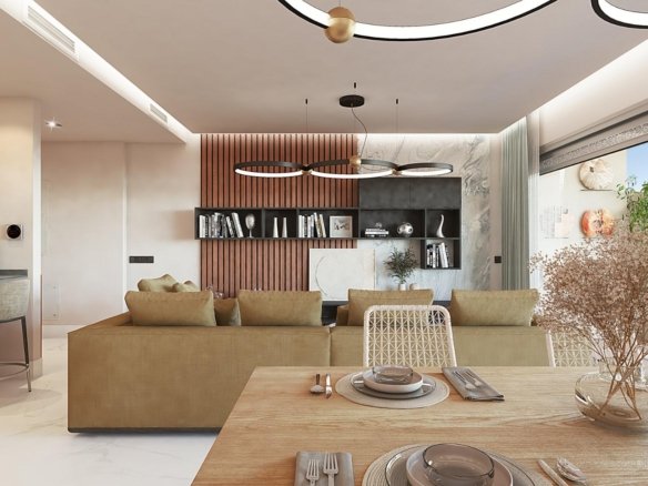 New Build residential development of apartments with 3 bedrooms and penthouses with 4 bedrooms and 2 to 3 bathrooms, only 4 minute walk away from the sea front promenade and 3 minutes from the ancient part of San Pedro de Alcantara, in the new expanding area towards Marbella beach and near Puerto Banus.