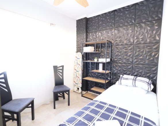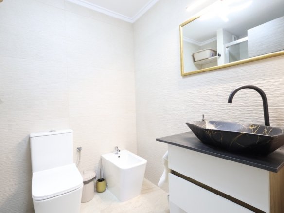 We presents at the Costa Blanca Alicante a modern downstairs apartment! Only 300m from the beach! With 3 bedrooms an open american kitchen, equiped bathroom and a large livingroom! There is a terrace and a comunal swimming pool! Walking distance to the center of Torrevieja! Close to bars and restaurants!
