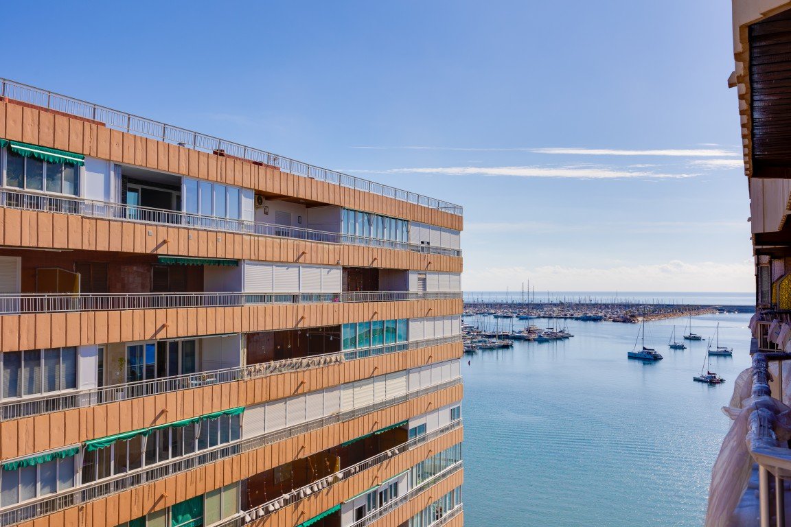 We presents at the Costa Blanca Alicante a spacious apartment in Torrevieja close to the sea! playa Acequion with 3 bedrooms, 2 badrooms, seperate kitchen and a terrace from 12m2 its on the 8 floor with elevator! and there is a comunal swimmingpool Walking distance to the center of Torrevieja and close to bars, restaurants and shops!