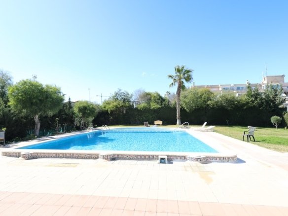We presents at the Costa Blanca Alicante an Apartment on the first floor with elevator in Punta Prima with 2 bedrooms, 2 bathrooms, independent kitchen, large dinersroom and salon and a big terrace partially closed with open view! Outside with a green zone and a comunal swimmingpool! Walking distance to supermarket, bars and restaurants! only 10min drive to center comercial La Zenia Boulevards!