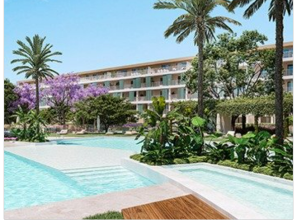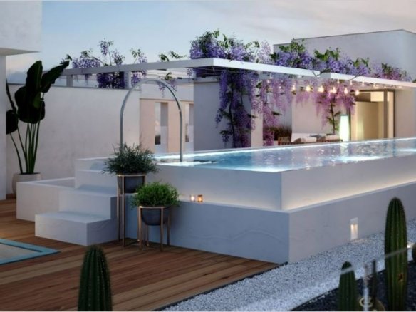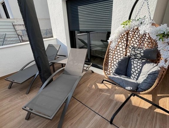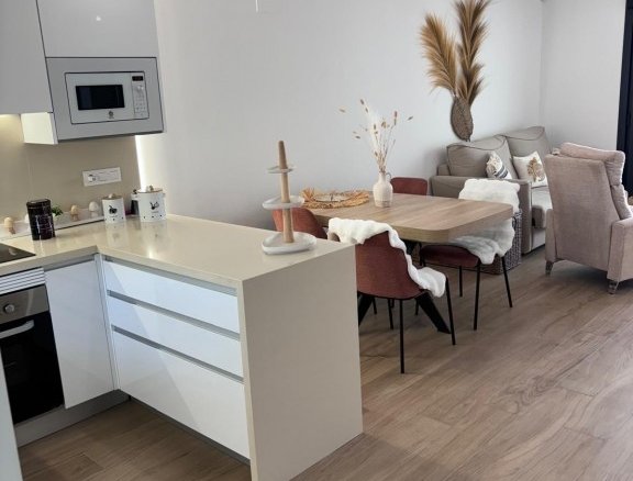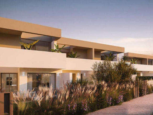 This modern home features an open-plan, fully equipped kitchen, 2 spacious bedrooms, and 2 contemporary bathrooms. Enjoy outdoor living with your own terrace, ideally situated near one of the two stunning communal swimming pools.