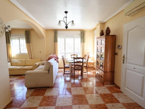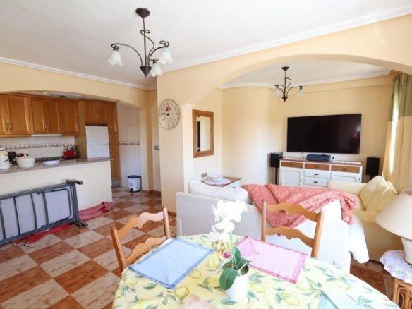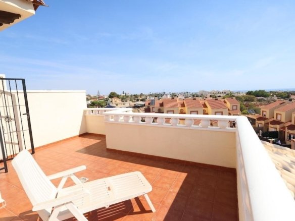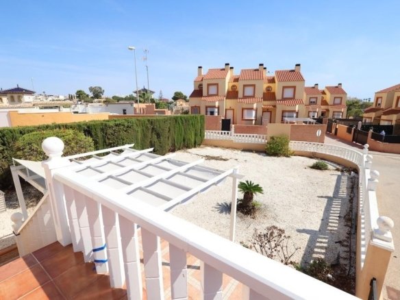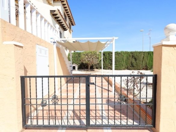 We present at the Costa Blanca Alicante a halfopen villa with seaview and a large plot where you can put your own swimmingpool! The house have 2 floors and a sunroof. Downstairs you find a a terrace from 14m2 a american kitchen, a bathroom with schower and a large livingroom! on the first floor 2 bedrooms one of them with terrace and seaview and a bathroom with a bathtube! The plot have a entrance for the car and there is a storageroom!
