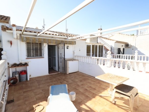 We presents at the Costa Blanca Alicante a house with space to put your own swimmingpool! Its have 3 bedrooms, 1 downstairs! 2 bathrooms and an American kitchen! There is a big solarium with a pergola and sea view! The urbanisation haves several swimming pools! Close to the famous Plaza Villa Martin where they have a lot of bars and restaurants!
