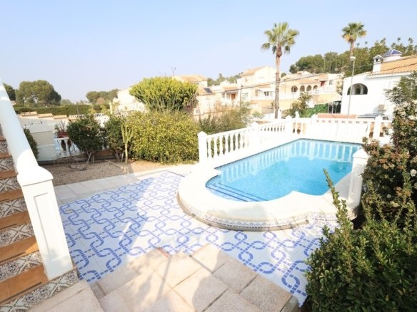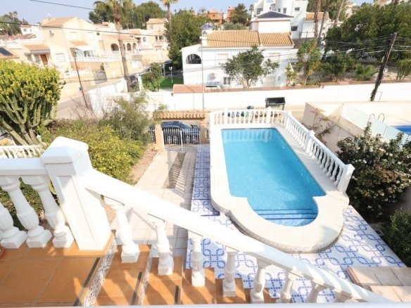 We presents at the Costa Blanca Alicante an Indenpendent Chalet in Los Balcones! With 3 bedrooms and 2 bathrooms! Further a large dinner room and a closed gallery! outside you have a private swimmingpool, large terrace with BBQ, a closed garage and a solarium! Close to supermarket, farmacia and hospital!