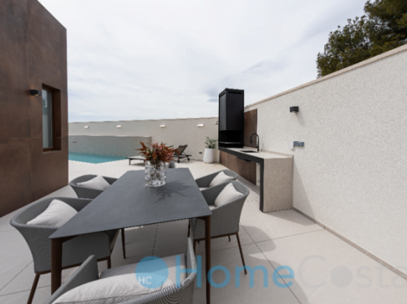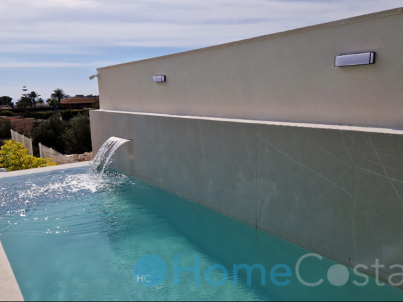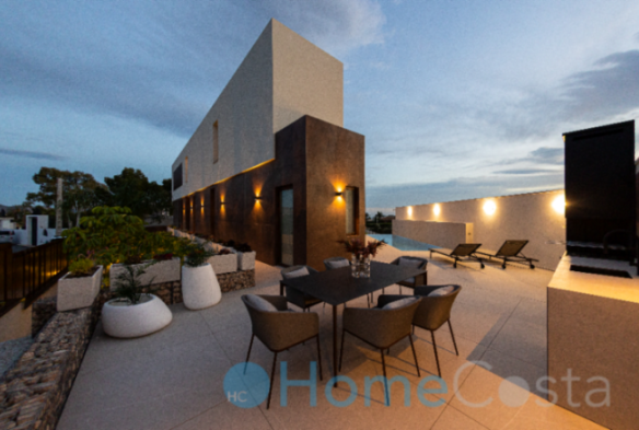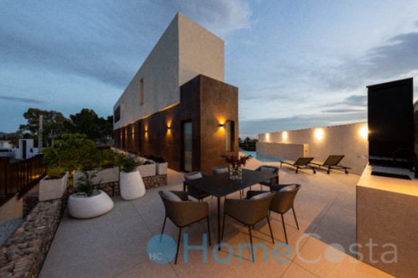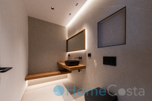 We promote this villa in one of the most prestigious areas of Benidorm. The Villa ZEN Infinity has four large bedrooms, each with its own bathroom, an office, a large living room with an integrated kitchen, views of the beautiful bay of Benidorm from all rooms. The terrace with pool plus a barbecue area.