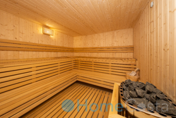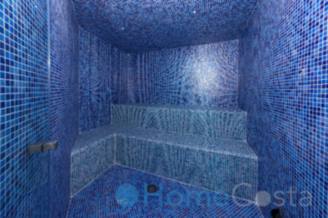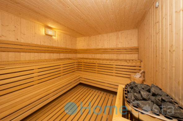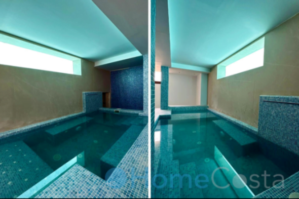 Heated pool inside the house with two saunas, one dry and one wet. It  has a wine cellar. Elevator from the