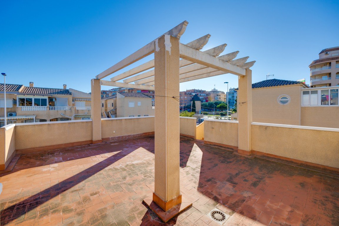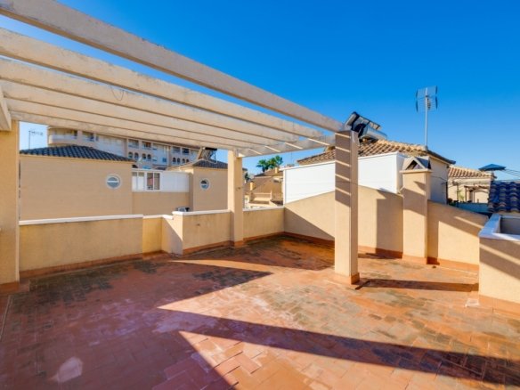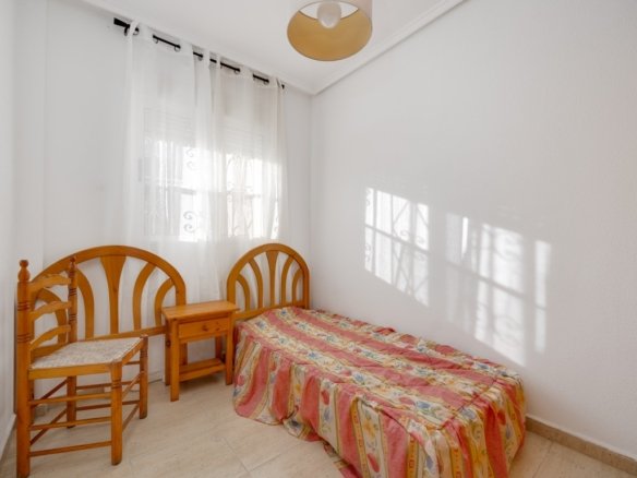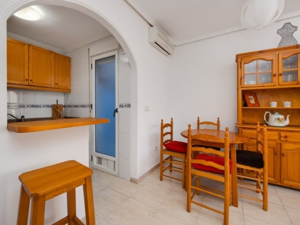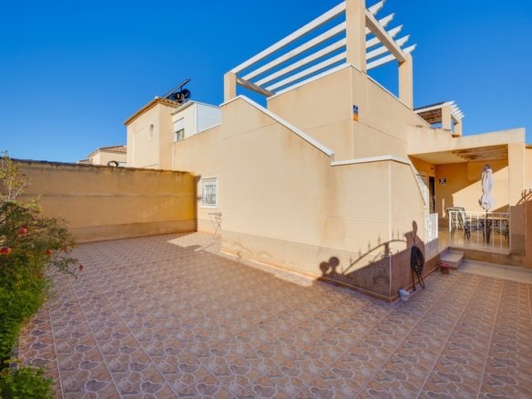 We presents at the Costa Blanca Alicante a half open smal Villa with a big garden in Pueblo center Torrevieja in a green zone with comunal swimmingpool! Its have 2 bedrooms an equiped bathroom, terras and a kitchen! close to the center, shops, bars, restaurants and supermarkets!