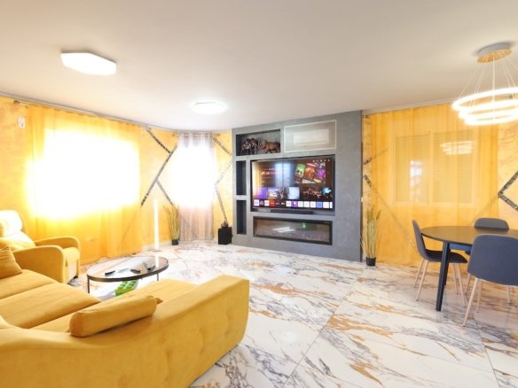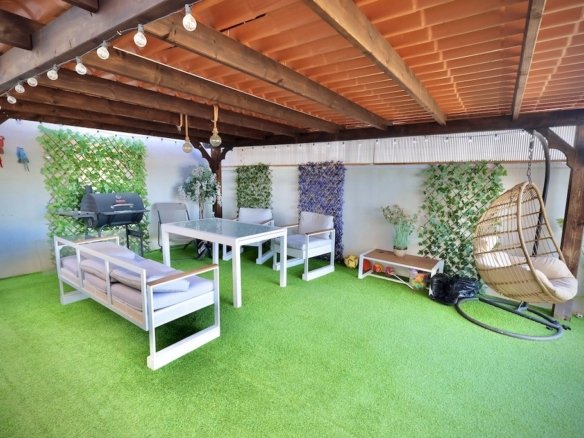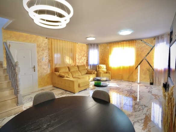 We present at the Costa Blanca Alicante a independent Chalet in San Miguel de Salinas in a residential urbanization exclusive! Its haves 4 bedrooms and 2 bathrooms!  Downstairs there is a wide livingroom and 2 bedrooms! perfect for visiting family our friends! On the groundfloor you find a spacious salon and dinnersroom, a kitchen, a bathroom and a bedroom! Upstairs a principal bedroom with a bathroom an a big terrace! Outside there is entrance for