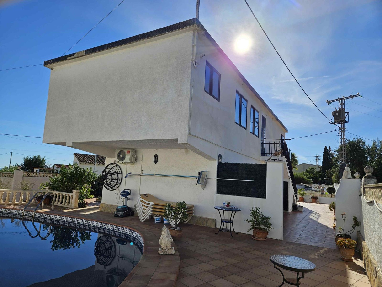 The villa sits on an exceptionally large and private plot, surrounded by greenery and tranquility, yet just a 15-minute walk from the town center and the beach.