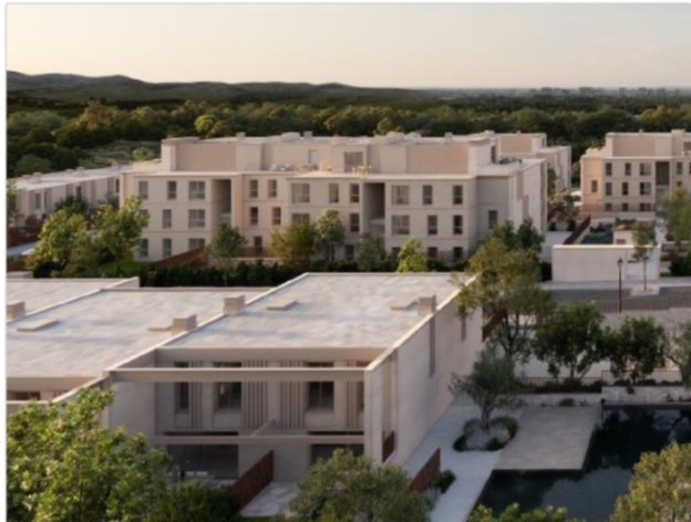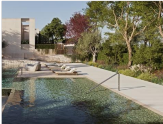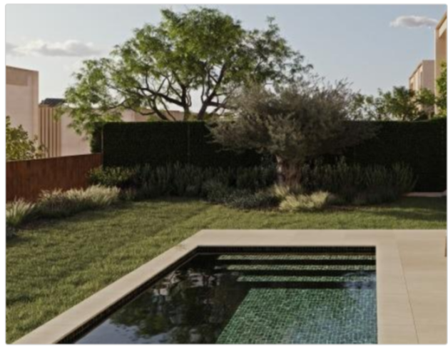 Residencial de obra nueva de 17 adosados con zona común ajardinada y piscina cerca de Valencia en Godella.