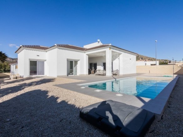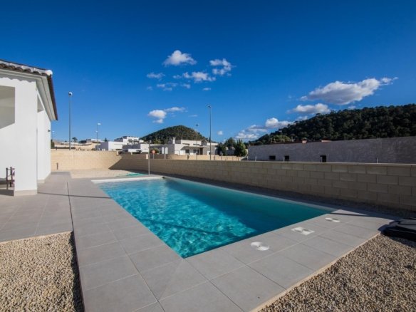 VILLAS DE OBRA NUEVA EN PINOSO Obra Nueva Villas independientes modernas que se pueden construir en parcelas rústicas o urbanas tenemos una amplia gama disponible en la zona de Pinoso: – 3 dormitorios, 2 baños – Piscina privada – Instalación completa de aire acondicionado – Cocina totalmente equipada – Gran selección de materiales de calidad – Luz y agua de red – 4 paneles solares incluidos – Etiqueta energética AA – Parcela de 15.658 m²